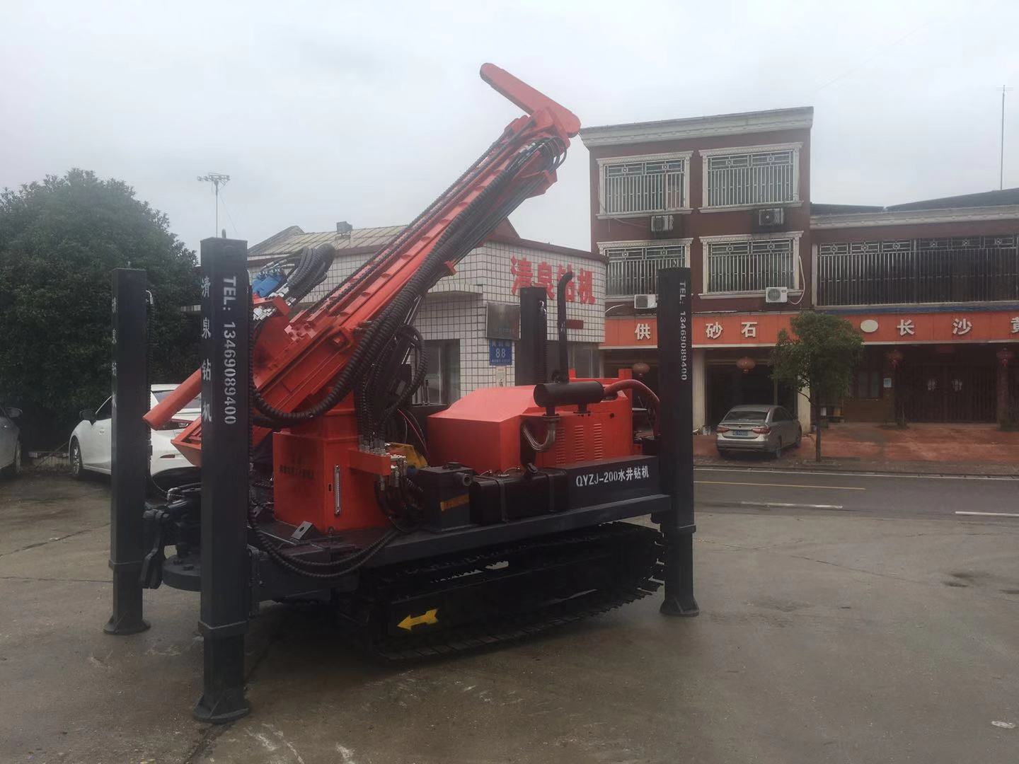 序號 類型 參數(shù) 1 型號 QYZJ-200 2 鉆孔直徑(mm) 105-350 3 鉆桿直徑(mm) φ76/φ89 4 一次性推進長度(mm) 3000 5 行走速度(km/h) 2.5 6 最大爬坡能力(°) 25 7 工作氣壓(mpa) 1.7-3.5 8 耗氣量(m3/min) 17-35 9 鉆桿長度(mm) 3000 10 最大提升力(T) 18 11 最大回轉(zhuǎn)速度(rpm) 0--100/200 12 機重(kg) 6200 13 發(fā)動機功率(KW) 77.3 14 長寬高(mm) 3800*1850*2450
